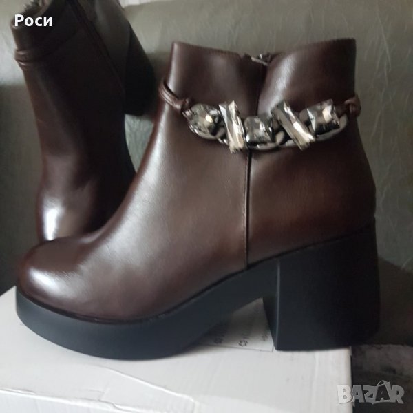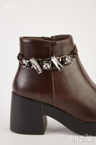 Нови дамски боти в кафяво, декорирани с камъчета около глезена, цип отвътрешната страна, дебел ток, ватирани - изключително удобни- номера в наличност - 38,39,41