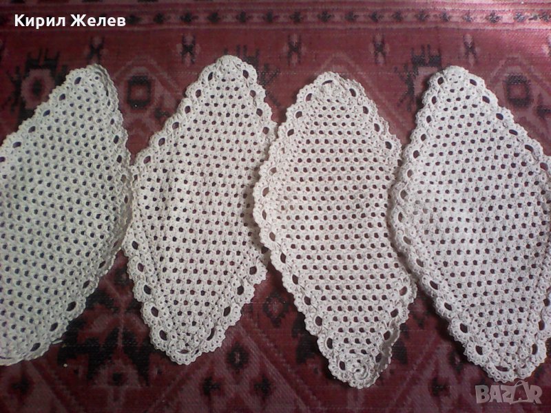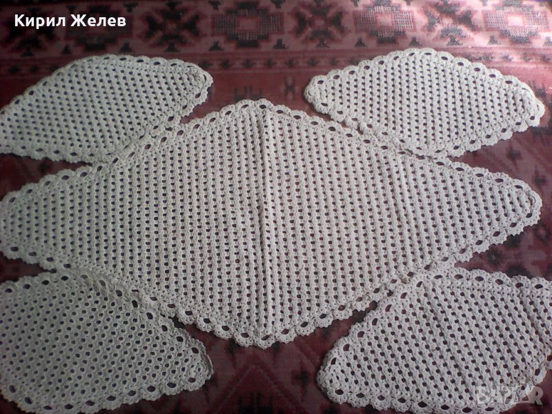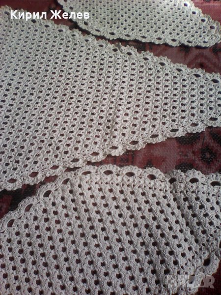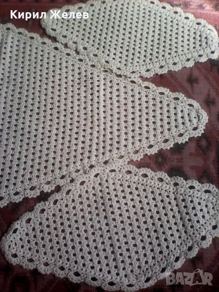 Плетени каренце голямо и малки пет бр здрави красиви ръчна работа запазени голямото дълго е 64 см широкое 30 см малките са по дългое 30 см широкое 16 см здрави конци интересни шарки моделче