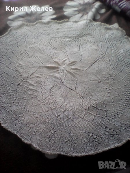 Голямо здраво каренце за маса кръгла или за другаде плетено на чеъери куки или на две става иза легло диван фоттьол добър модел интересни шарки запазено здраво широкое 110 см на 110 см