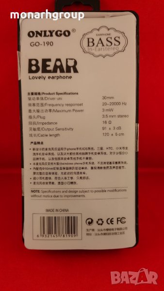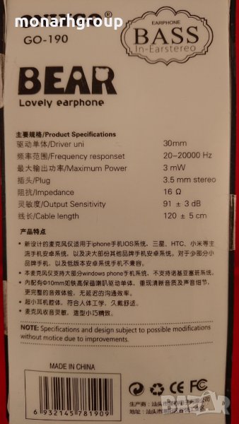 Висока производителност, отлични ефекти на повикване 6 микрометра ултра тънки диафрагми напълно възпроизвеждат кристално ясни, звуци с висока разделителна способност Високопроизводителни 10mm пълна гама неодимови високоговорители Размер на високоговорителите: 10 mm Чувствителност: 96 3db Импеданс: 16 Честотен отговор: 20 ~ 20,000Hz 3.5мм Дължина на кабела: 120см Микрофонни размери: 4x1.5mm Чувствителност: -42dB = / - 3dB Честотна характеристика: 30 ~ 16,000Hz
