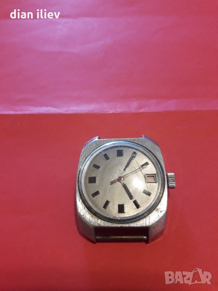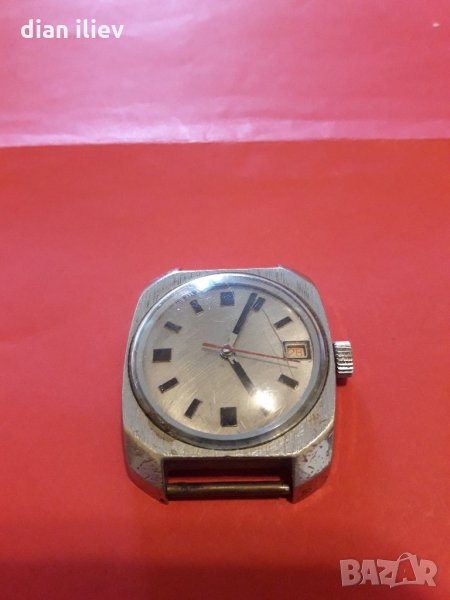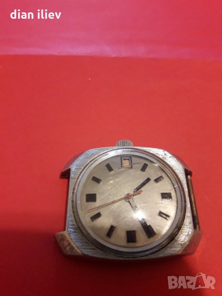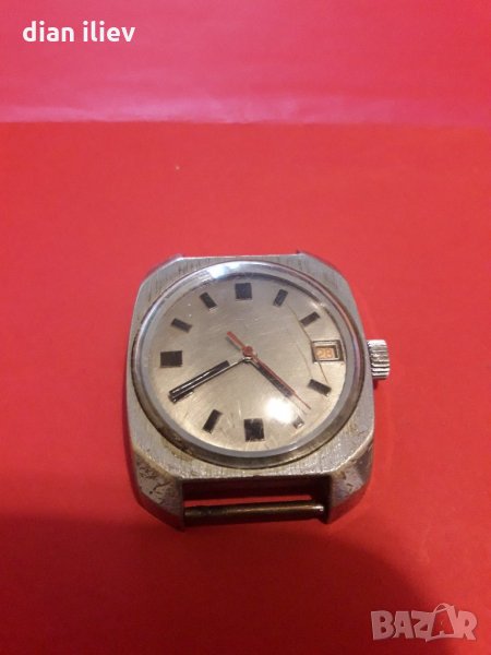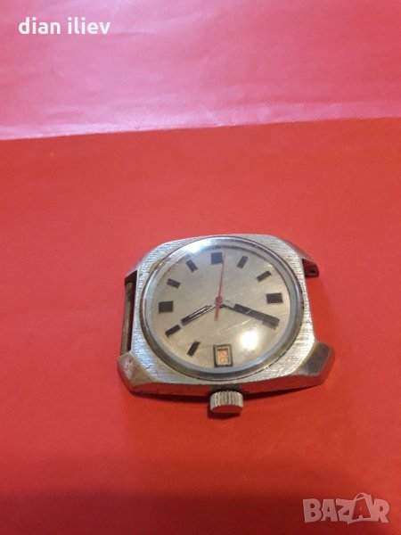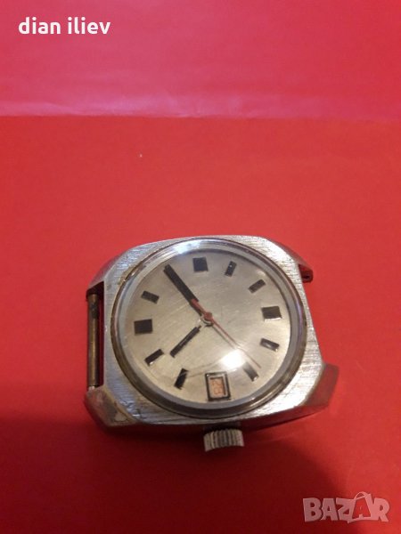 Стар механичен мъжки часовник, същия работи много точно и сменя дата. Забележка пукнато стъкло.