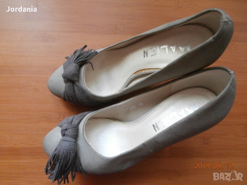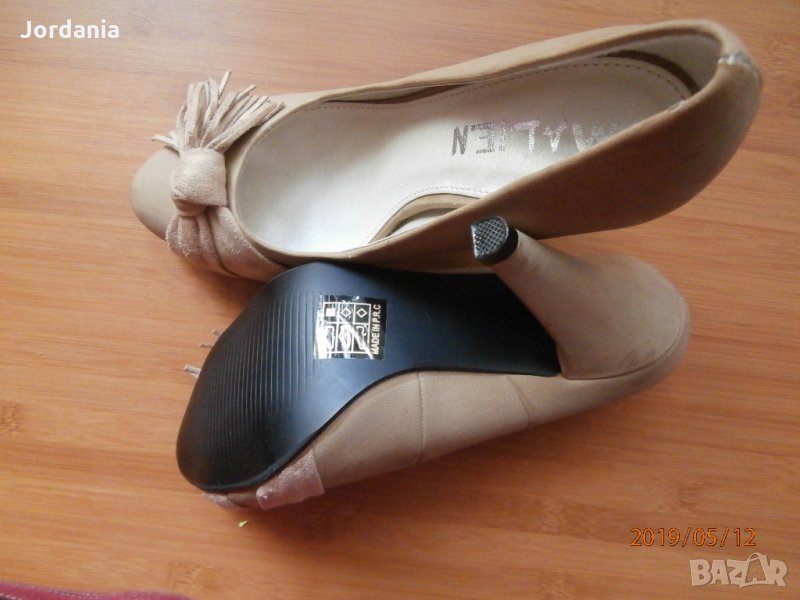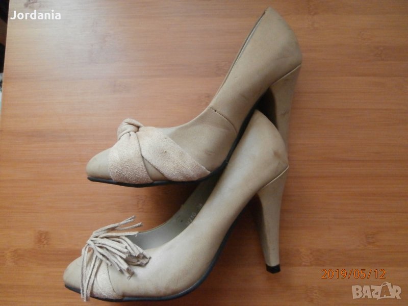 Обувки от изкуствен велур. Височина на тока 10 см. Цвят бежов (36, 37, 38 номер) и сив (36 номер)