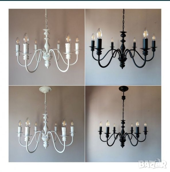 Допълнение към полилеите от моите обяви в стил шаби шик . Възможна комбинация и с настолни лампи в съшия стил . Цялостно обзавеждане със стилни и различни от всички останали осветителни тела. Предлагат се и аплици за стена, настолни лампи, единични висящи лампи(пендел) свещници в същия класически стил( шаби шик , ретро , винтидж )