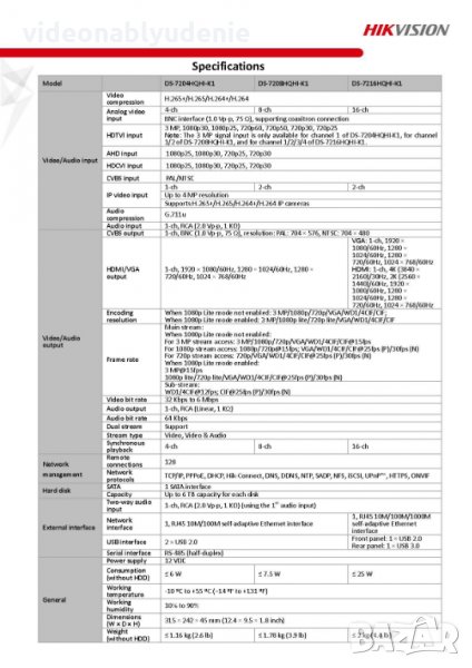 Видеорекордер HIKVISION DS-7204HQHI-K1 поддържа 4 броя HD-TVI/AHD/CVI камери до 2 MPX в H.265 Pro+/H.265 Pro/H.265 компресии.