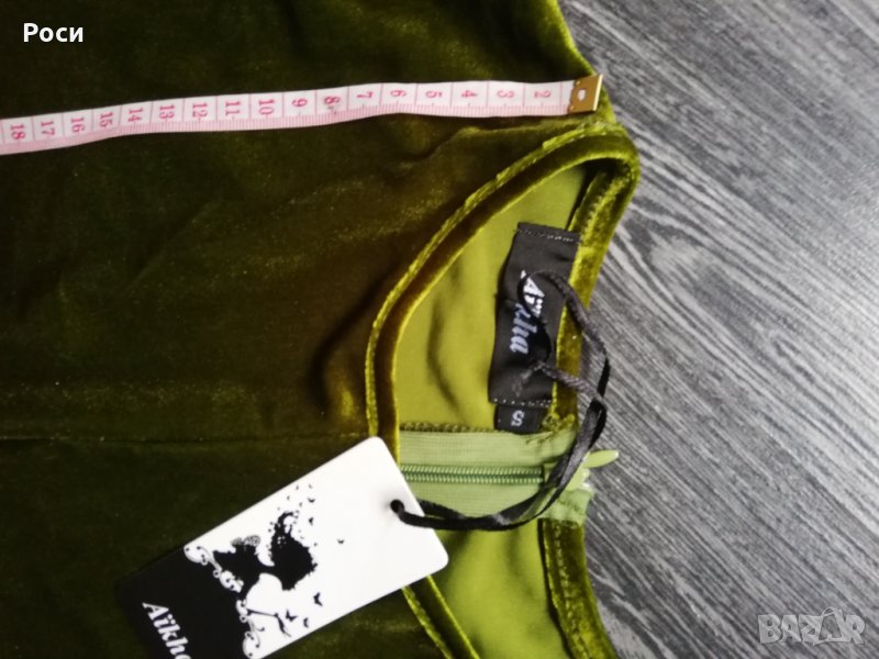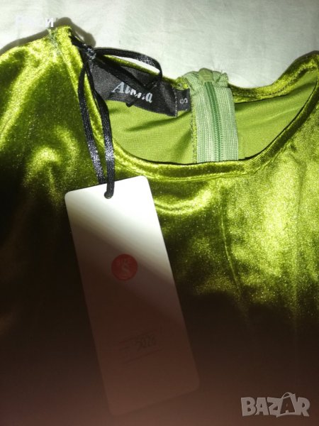 Нов дамски гащиризон в зелен плюш - еластична материя, без ръкави - дължина 147 см, гръдна обиколка - 78 см, в неразтегнато състояние, талия - 90 см . Нов с етикет