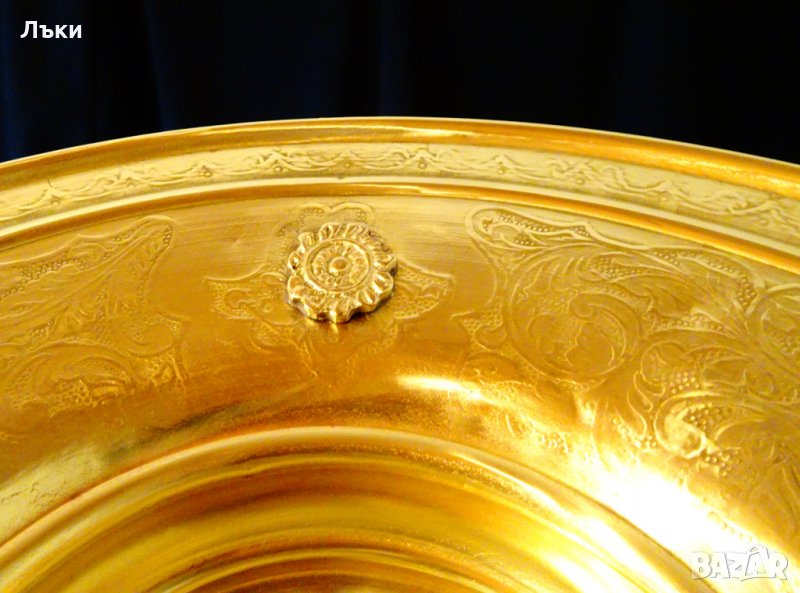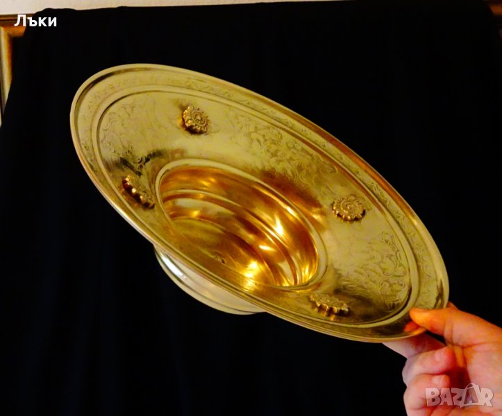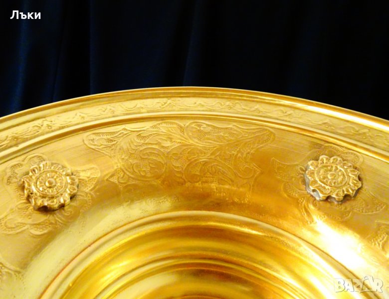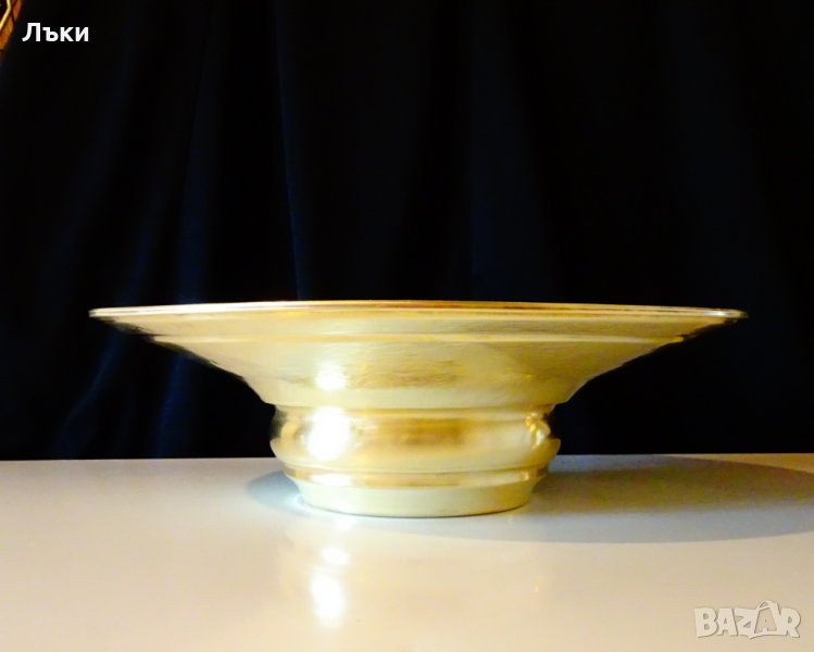 много старинен,като изработка.Височина 10 см.,диаметър 31 см.,тегло 500 гр.