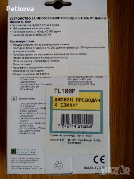 Продавам портативен речник/преводач на 4 езика, 40000 думи. Има часовник с аларма, калкулатор, памет за телеф.номера, преобразува валути и метрични единици.