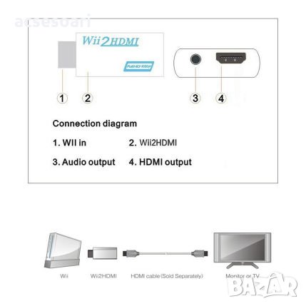 1 x За wii2HDMI конвертор (аудио кабел не е включен)