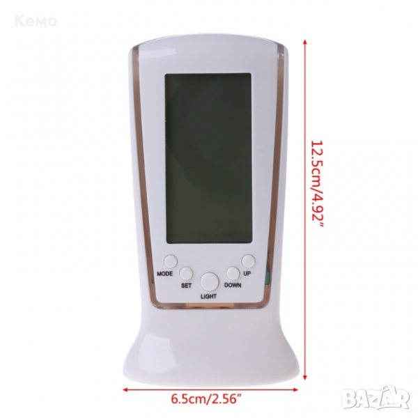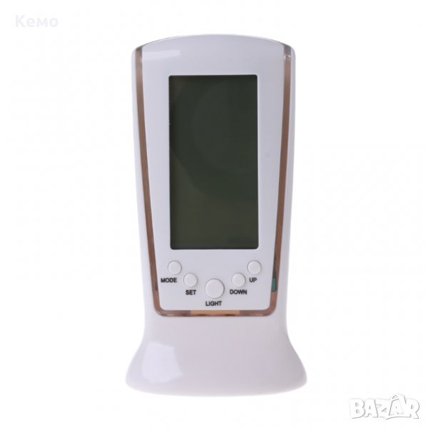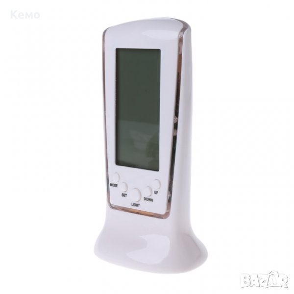 Настолен дигитален часовник с термометър за бюро. Перфектен за дома! Можете да включите осветлението му чрез натискане на бутона Light. Показва - час, дата, ден от седмицата, температура