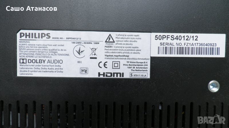PHILIPS 50PFS4012/12 със счупена матрица ,TP.MS3463S.PC821 ,T500HVN07.5 Ctrl BD ,K500WDK3