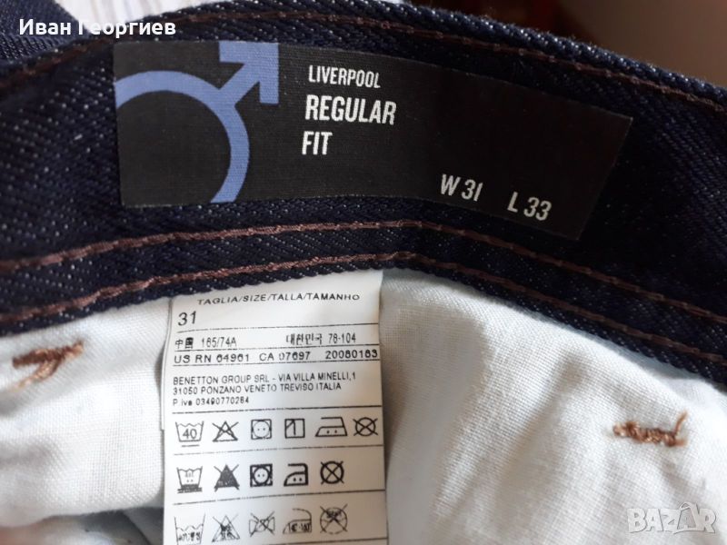 Мъжки дънки Sisley Liverpool. Състав памук и еластан. Права кройка. Дънките са скъсени, но не са носени.