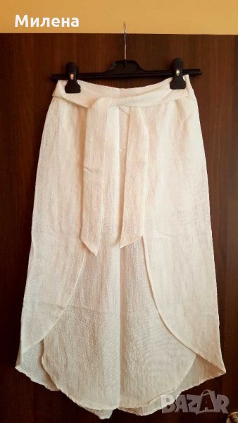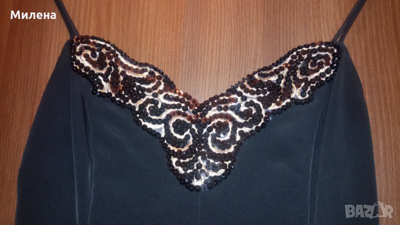Чисто нова прекрасна рокля на известната марка APRICOT, купувана от Лондон на ТОП цена. Роклята е с флорални мотиви в свежи летни цветове (синьо, зелено, оранжево, червено). Има цип и коланче отзад, което регулира талията. Размер на роклята - S, въпреки, че на етикета е посочен - XS. Дължина на роклята - 89 см., гръдна обиколка - 80 см. Роклята е чисто нова, което я прави изключително подходяща и за подарък. Цена - 50 лв. При покупка на роклята получавате 2 подаръка - втора рокля и пола. Черна, изключително стилна и елегантна рокля, с тънки презрамки и ефектни пайети - роклята е ръчна изработка. Пайетите са зашити около деколтето на платка, която има възможност да се махне. Това прави роклята подходяща, както за официални поводи, празници, абитуриентски балове, сватби, така и за по-ежедневно носене. Има подплата, която й придава малък обем в долната част. Обличана е само веднъж. Размерът й е S - М, , дължина от презрамката - 85 см, гръдна обиколка - 82 см, талия - 70 см. Роклята е на дизайнерката Джина Ник. Дълга бяла пола NUNUI с уникален дизайн наподобяващ формата на лале, с коланче отпред. Полата има подплата, ластик на кръста, което я прави удобна за носене. 100 % памук, дължина: 75 см. Размер - S. Цена на роклята с 2 подаръка - 50 лв. Офертата важи до края на месеца и не подлежи на коментар!!! Не приемам размяна.