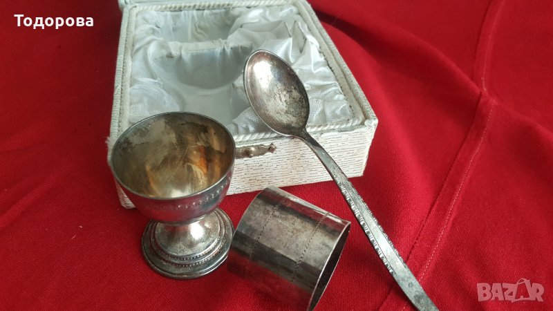 Моно комплект-посребрени изделия-чаша,салфетник и лъжичка.