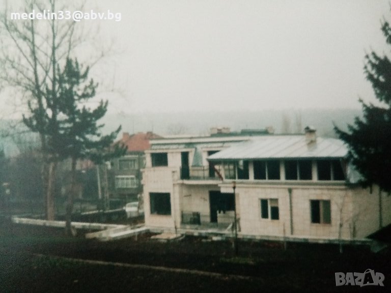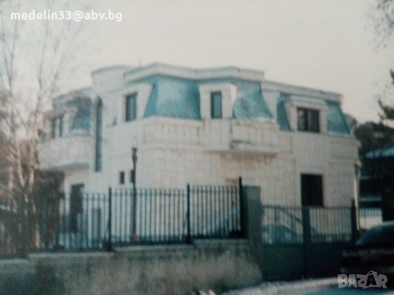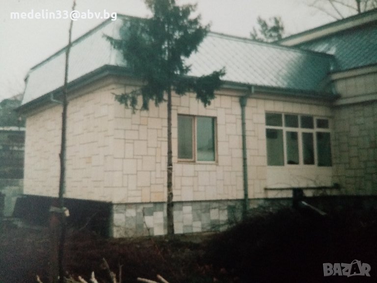 трифазен кабел до главното табло на къщата и са пуснати кабели в двора за дворно осветление.Има три входа, един централен за големия апартамент с вътрешно стълбише на запад. На север има вход откъм северната страна на двора и бетоновия път. На юг има вход за малкия апартамент. Двата апартамента имат вътрешна връзка,чрез нормална врата. В сутерена има голама маза,коридор и по проект е правено бомбено укритие.Големия апартамент се състои от голям хол, трапезария съединени,отделна голяма кухня, всички стаи са с изход на тераси. Има баня и тоалетна на първия етаж за гости. Чрез коридор и голямо масивно стълбище /както е на жил. блокове/ се достига до втория етаж състоящ се от коридор и три самостоятелни спални, две от които са на юг с тераса, а другата е на север без тераса. На втория етаж има още една малка стая гледаща на запад, проектирана за будоар от която се влиза в банята. Втория етаж е мансарден,но скосенията са малки и са просто за атракция и не пречат по нищо на стаите. Всичко е масивно,бетонни плочи, покрива е с хидроизолация газопламъчна. От терасата на втория етаж се отива на голямата покрита тераса която се намира над малкия апартамент и е с площ 70 м2. Цялата е от масивна дървена конструкция и отпред е с плъзгаща алуминиева дограма,която като се отвори става като открита отпред тераса.