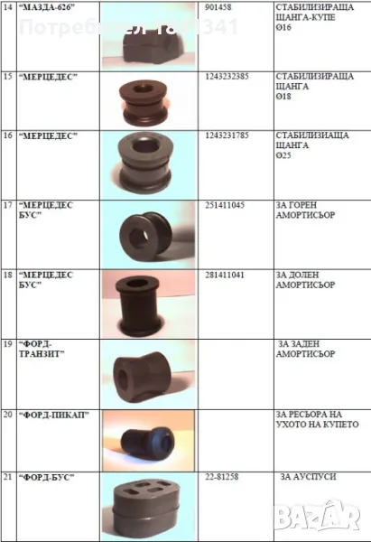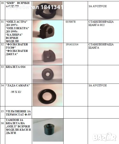 Продавам тампони за ауспуси/гърнета, за стабилизиращи щанги, уплътнения за термостат.