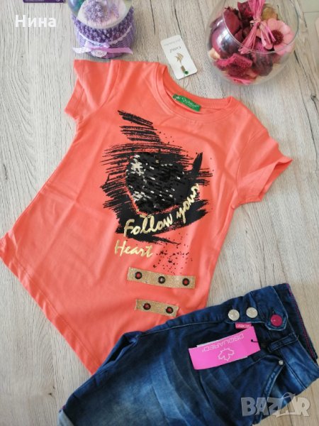 Асиметрична тениска от Chichlid, с обръщащи се пайети, в летен и свеж цвят. Налични размери: 5/6 години, 6/7 години, 7/8 години, 8/9 години, 9/10 години, 10/11 години и 11/12 години. 💛🖤💛🖤💛 За още моделчета разгледайте и останалите обяви в профила ми.