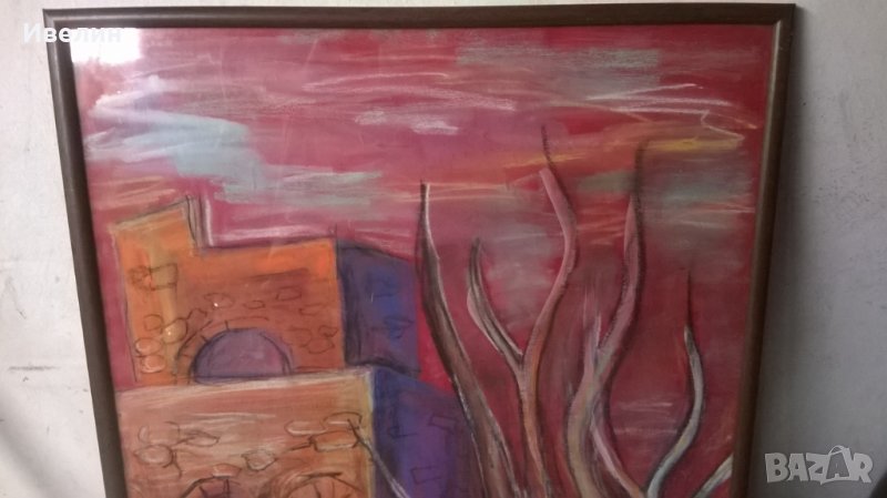 картина-пейзаж.техника пастел в рамка със стъкло с размери 72см/52см.