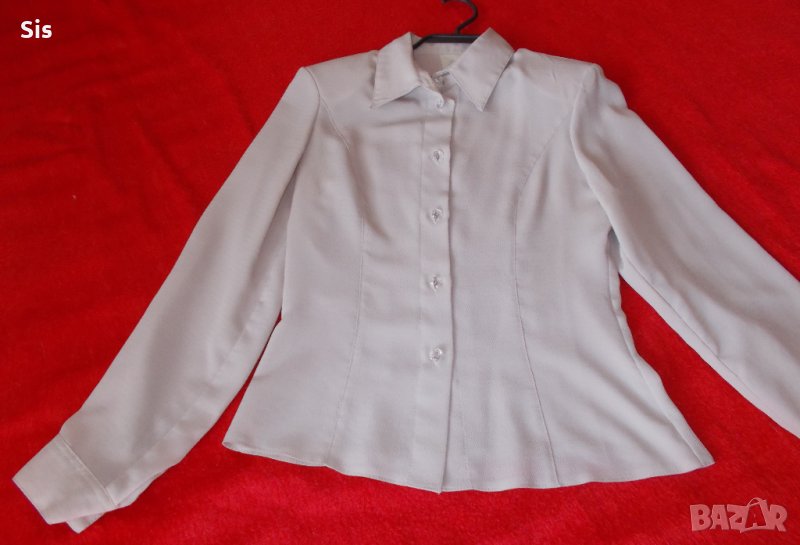 Дамска копринена блуза с дълъг ръкав от немачкаема материя, размер 42, който отговаря на М,елегантна, вталена. Много актуален цвят - бежово,който върви със всичко. Без забележки с отлично качество