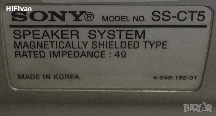 · 1 x SONY SS-CT5 (център): 4 Ohm, с размери: 190 × 122 × 89 mm. Тегло: 0,56 kг. (единична цена 83 лв.).