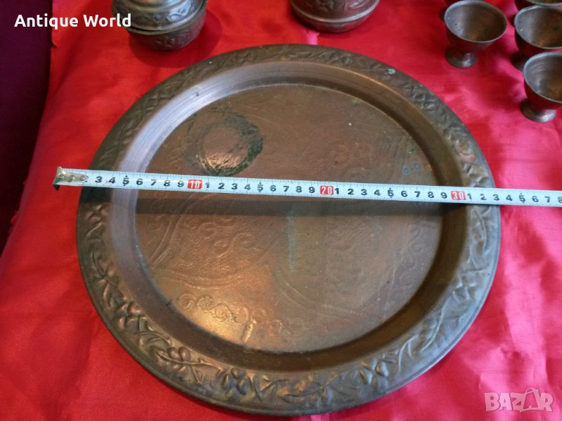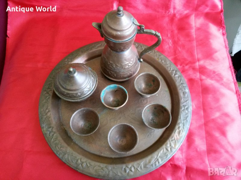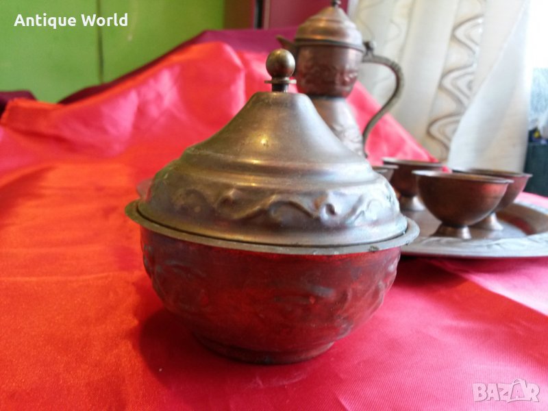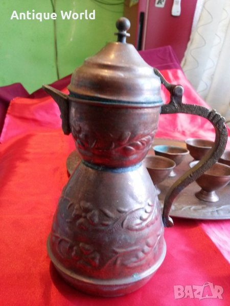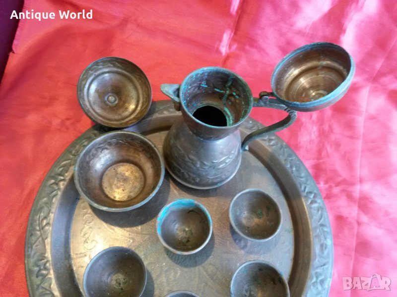 Красив Много Стар Турски Меден ,Бакърен Сервиз за Греяна Ракия.С непочистената си естествена патина! Състоянието е видно.