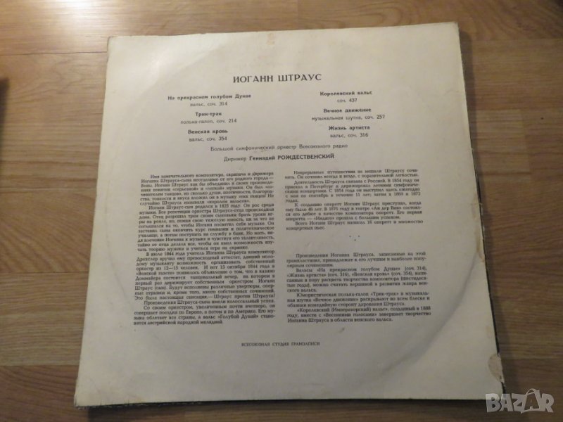 Грамофонна плоча Йохан Щраус- изд.70те г. - обичайте и съхранете хубавата музика