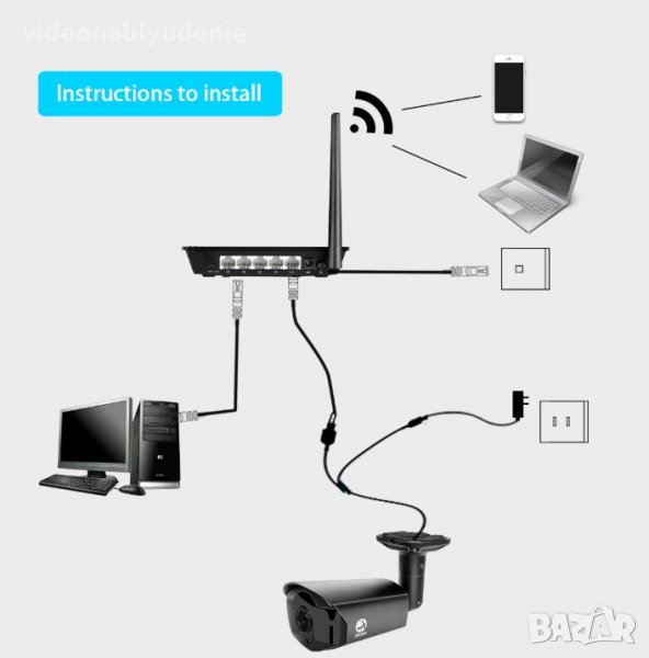 Комплекта се състои от 4 канален NVR с БЪЛГАРСКО меню + 4 броя IP Камери + Зарядни за всички!