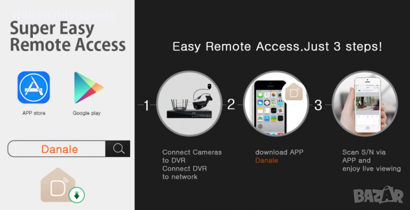 NVR-а като цяло с всички камери едновременно и всяка една камера по отделно също сама по себе си, могат да се достъпват от цял свят от смартфон, само с въвеждането на серийният им номер!
