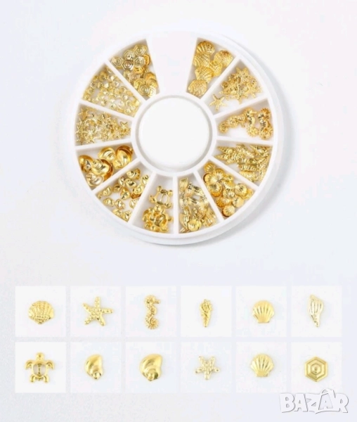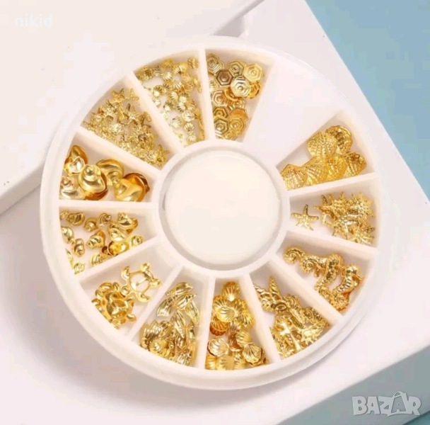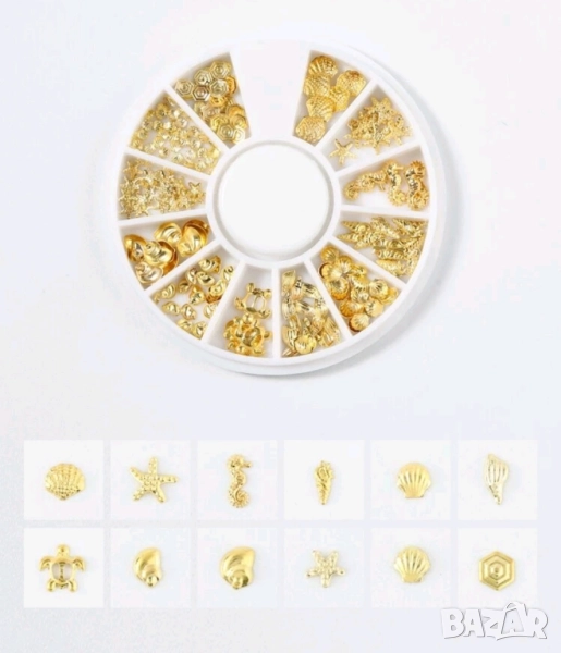 Златисти ситни и едри Морски миди мида и др златни декорация украса за нокти маникюр → Обява 25430905