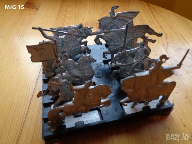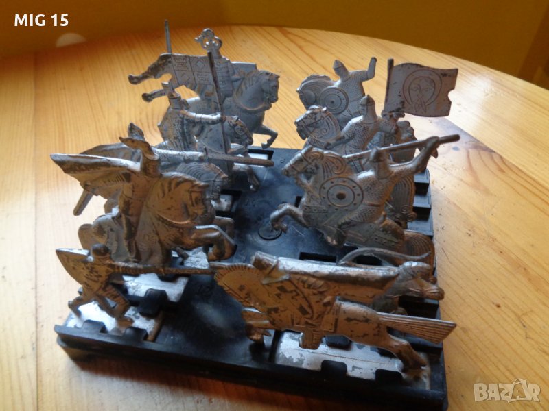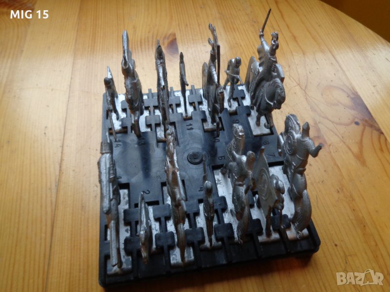Продавам стари съветски метални фигури на воини. Общо са 14 броя , имат и поставка с кутия.