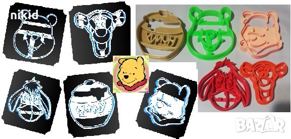 Мечо Пух Йори Прасчо Тигър Буркан пластмасов резец резци форма фондан тесто бисквитки → Обява 25435328
