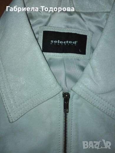 Мръсно бяло яке, естествена кожа.Изчистен модел.