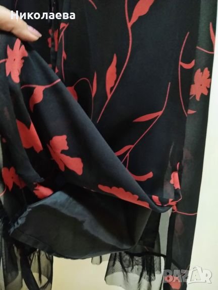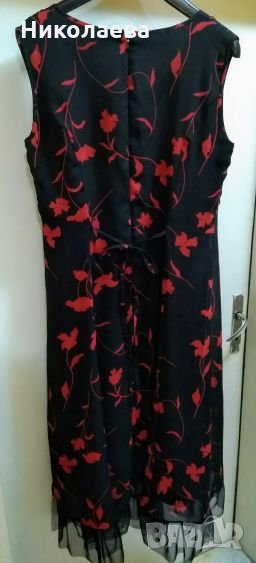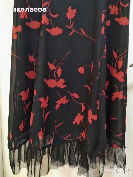 Дълга черна рокля с червени цветя.L/XL → Обява 25440089
