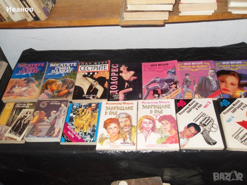 изброя всички.Последните ми книги са от периода 2005-2010год. като имам почти всичко от класиката.Пишете какво търсите,ако я имам-снимам Ви я и я изпращам по Еконт или Спиди.Цените са от 3 до 20лв.Туй което е под 3лв. Ви го пращам безплатно като промоция за компенсация на транспортните разходи!Прилагам и няколко снимки по тематика: