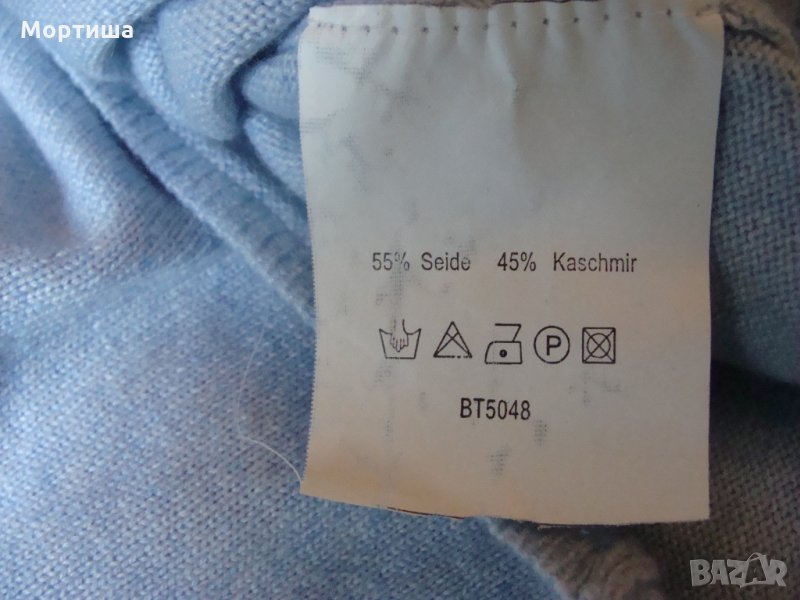 Блузата е 100% оригинал ( летен кашмир )Който желае може да се запознае с цените им Небесно сня Дължина 58 см мишници 37 см рамена 40 см ( има разтегливост ) Без забележки като нова КРАЙНА ЦЕНА БЕЗ БАРТЕРИ поради зачестили злоупотреби не изпращам със проба