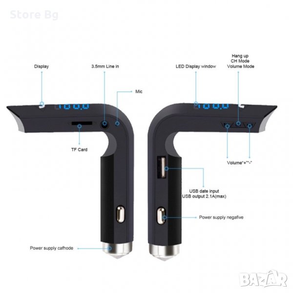 FM Трансмитер Bluetooth Хендсфри MP3 USB – Hammer-LED дисплей, USB Charger,TF Card