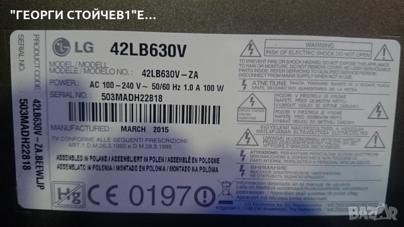42LB630V СЪС СЧУПЕНА МАТРИЦА, снимка 1 - Части и Платки - 25467249 42LB630V СЪС СЧУПЕНА МАТРИЦА, снимка 2 - Части и Платки - 25467249 42LB630V СЪС СЧУПЕНА МАТРИЦА, снимка 3 - Части и Платки - 25467249 42LB630V СЪС СЧУПЕНА МАТРИЦА, снимка 4 - Части и Платки - 25467249 42LB630V СЪС СЧУПЕНА МАТРИЦА, снимка 5 - Части и Платки - 25467249 42LB630V СЪС СЧУПЕНА МАТРИЦА, снимка 6 - Части и Платки - 25467249 1/6