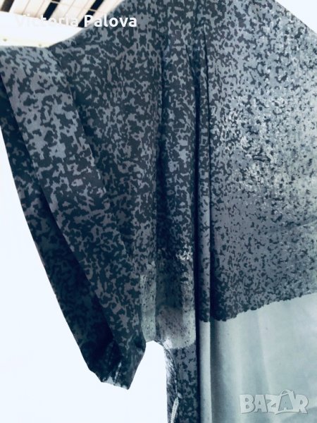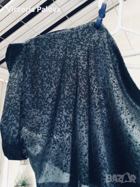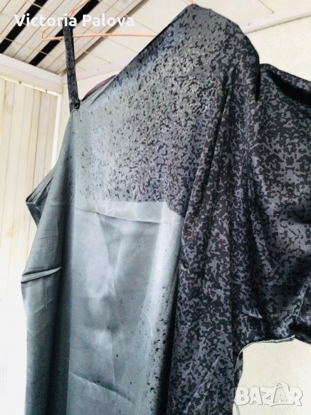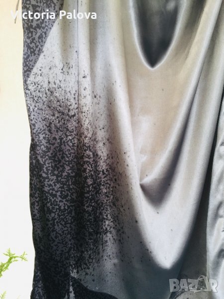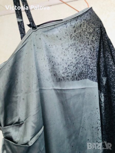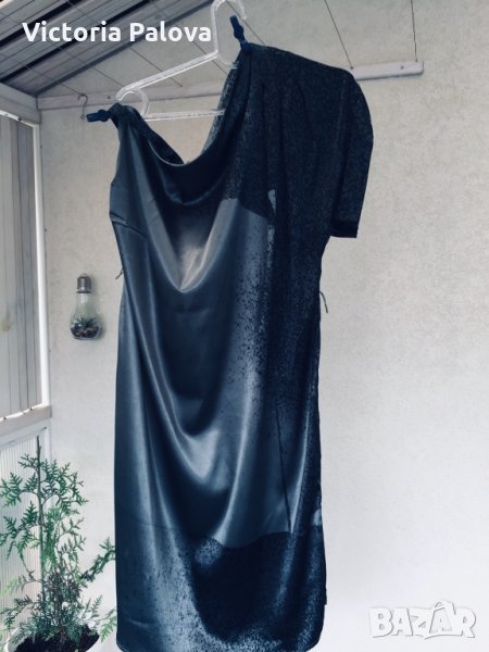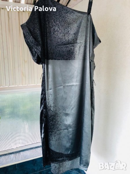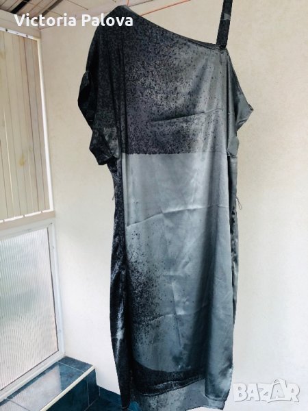 Роклята е особена.блестяща,бляскава и атрактивна.дължината отзад е 116см,отпред-108см,гр.обиколка -70см,модел кокон,стеснява се надолу.едното рамо е с презрамка,другото е с ръкав,който е направен с красиви плохи.под мишницата на другата страна също има плохи.има вариации да се носи и с колан,но без него е много по-ефектно.