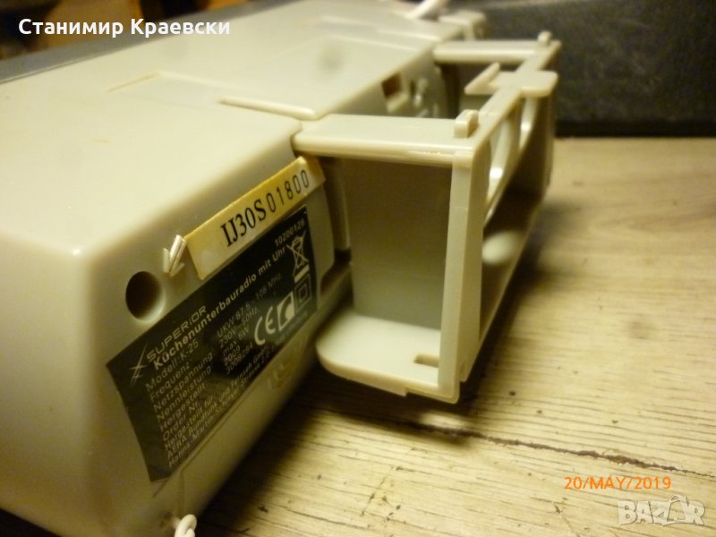 Радио часовника работи без проблеми Монтаж под кухненски шкаф Има обаче и прибиращи се крачета и може да стои и на маса или нощно шкафче Леки забележки по корпуса Аналогово радио