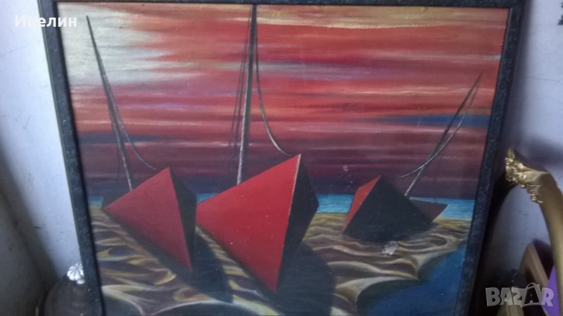 картина-лунна светлина.масло на шперплат,подписана,датирана в рамка с размери 65см/75см.нуждае се от почистване.
