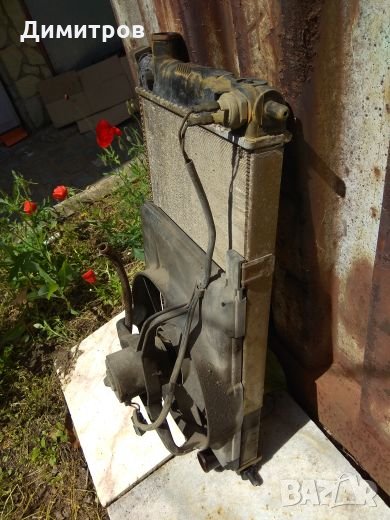 Запазен,малко работил радиатор. Купен е нов преди 3 г. Комплект с вентилатор едноскоростен. Тампони за горното захващане. Мотора е 1,3S.