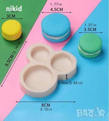 3 размера Макарон Макарони силиконов молд за фондан украса торта декорация шоколад гипс сапун свещ → Обява 25510617