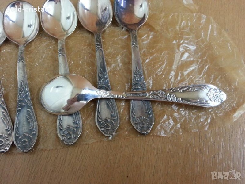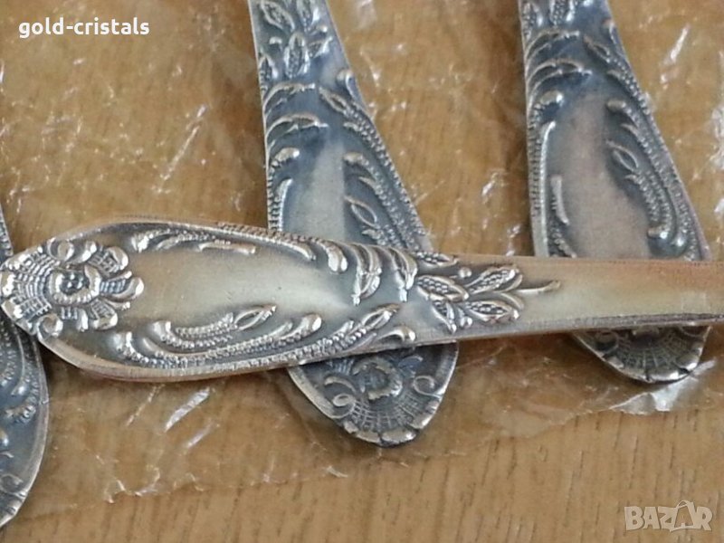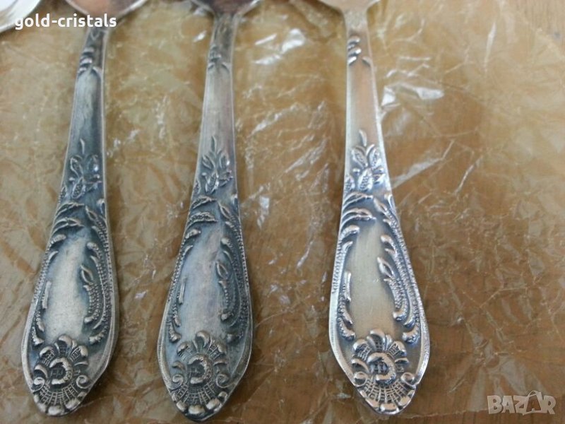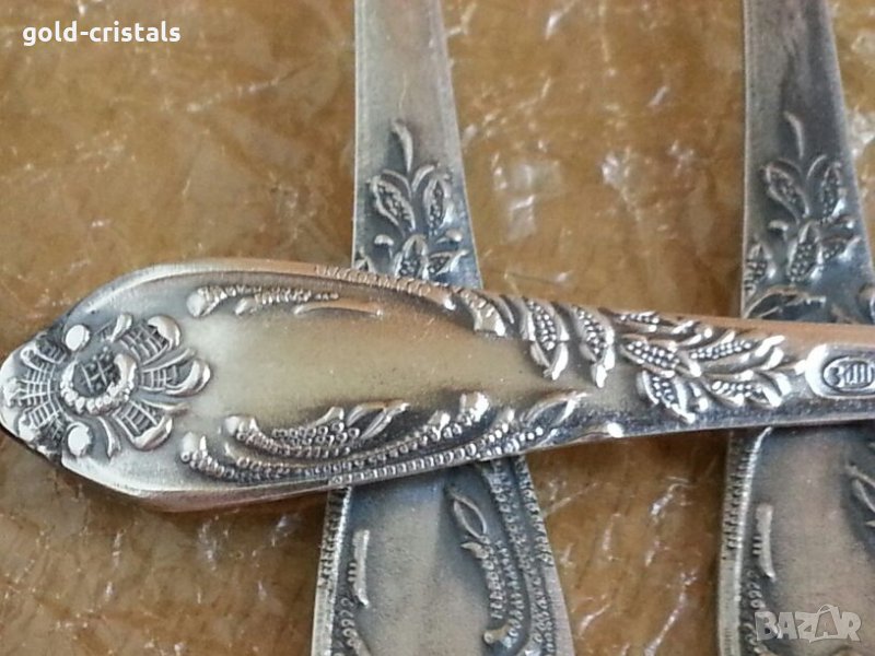 комплект кафени руски лъжички мнц мелхиор посребрени неупотребявани двустранно гровирани една е почистена от естесветата патина при желание може да се почистят за кафе 120лв за чай 120лв лъжици за основно 20см 120лв вилици за основно 20см 120лв ножове 120лв сервиз комплект сет лот съветски ссср маркирани мнц ретро стари старинни антикварни арт декор винтидж колекция стари старинни антикварни предмети обзавеждане за дома и семейството подходящи за подарък за ценители и колекционери