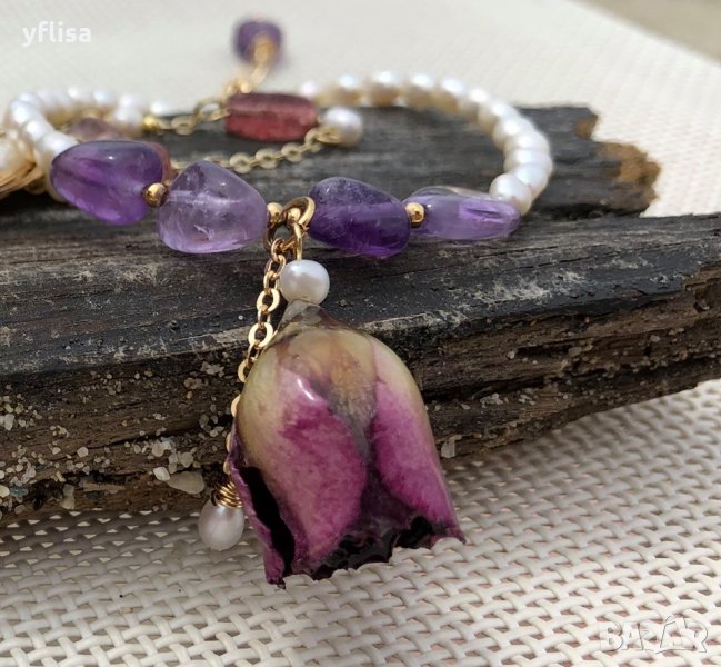 Може да допълните с гривна от същата селектирана колекция с естествена роза и перли, която ще откриете единствено при нас.