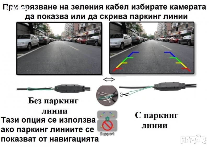 Камерата се поставя на мястото на плафона, и от там се свързва към ТВ или навигация.