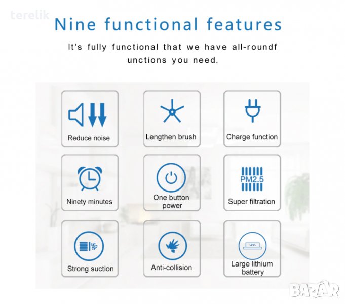 • Издръжлив, с едно натискане на бутон, интелигентно каране, силно всмукване, тихо и екологично, дълготраен живот на батерията