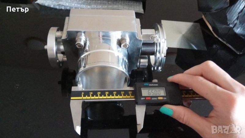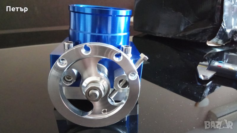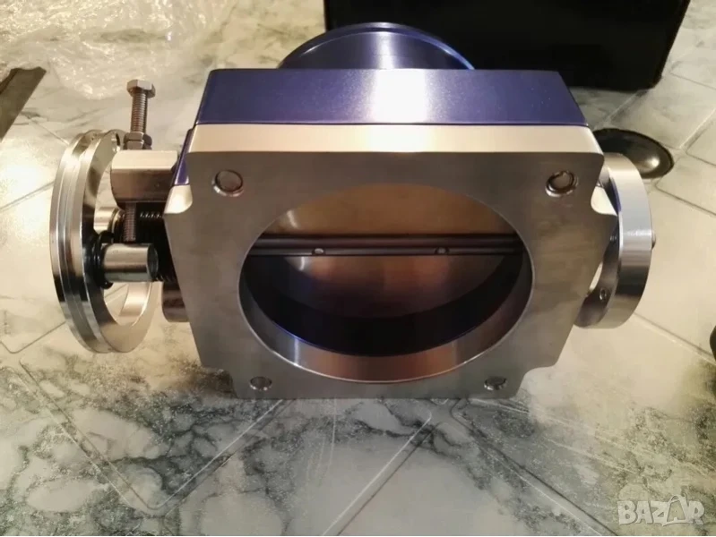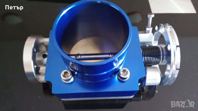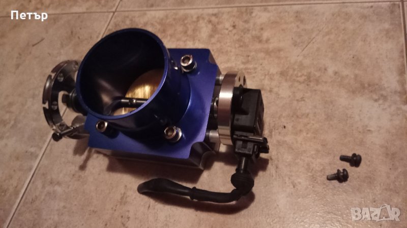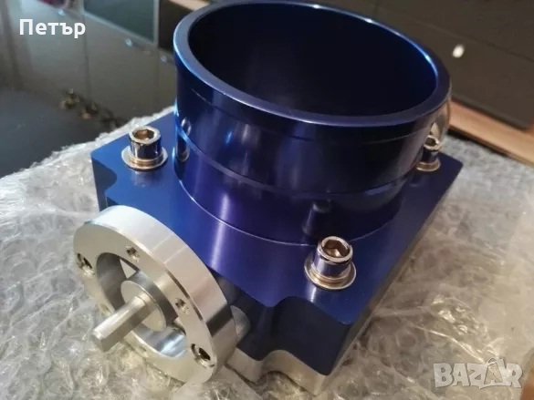 1. Тунинг дросел на 65мм вътрешен диаметър, пасва на ауди а3, голф 4 GTI 1.8т на стандартния колектор. От външната страна е за 72мм маркуч, междуболтово разстояние 60мм, има уширена периферия с възможност за поставяне на по-широка скоба, възможен е монтаж на TPS сензор, има няколко свободни позиции за жилото на газта в зависимост от дължината му, болтче за регулиране на празния ход, има преходен фланец при нужда. Имам го в 2 цвята – сив и син. Универсален!!!