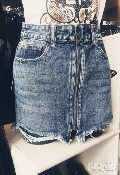 Хит модел дънкова пола с цип -мека материя- талия-39см ; дължина -36 см