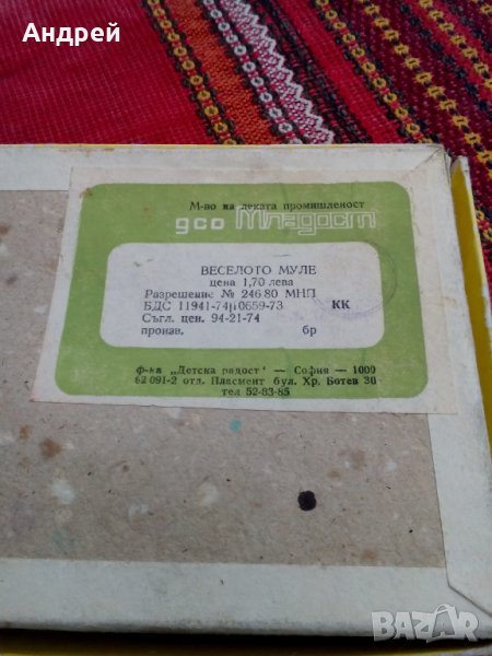 Стара детска игра Веселото Муле, снимка 1 - Антикварни и старинни предмети - 25547267 Стара детска игра Веселото Муле, снимка 2 - Антикварни и старинни предмети - 25547267 Стара детска игра Веселото Муле, снимка 3 - Антикварни и старинни предмети - 25547267 Стара детска игра Веселото Муле, снимка 4 - Антикварни и старинни предмети - 25547267 1/4