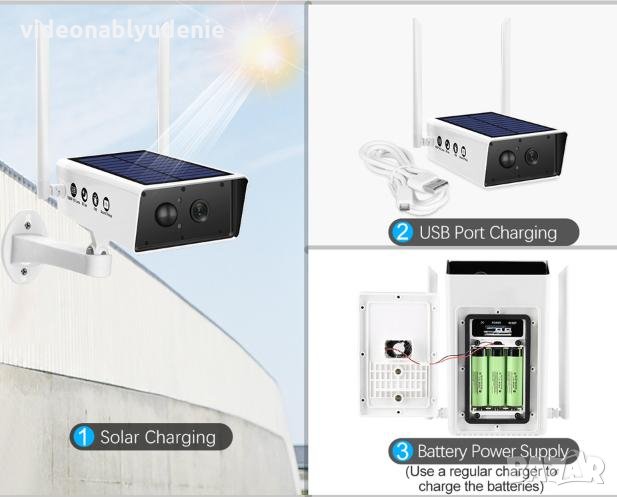 Водоустойчива WiFi Соларна Камера 2MP 1080P 3х18650 Батерии Микрофон Високоговорител м-SD Карта Слот