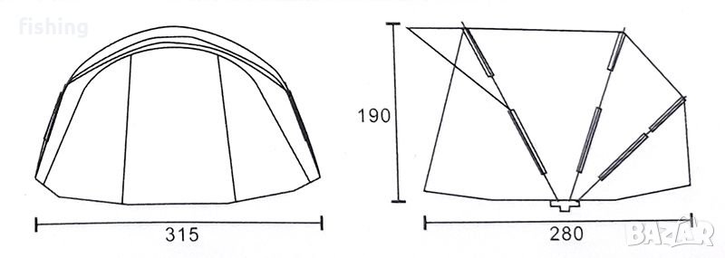 Топ модел на нашата нова Carp Pro гама от палатки със специален "Diamond" знак на най-високо качество! Става дума за голяма бивша палатка с размери 315х280х190 см (ширина х дълбочина х височина), толкова голяма или висока, че възрастен човек може да стои в нея без огъване. Предназначен е за настаняване и пълен комфорт за двама рибари или две големи класически легла, а остава още много място. Изработена е от висококачествени 210D PU материали с водонепроницаемост от 10000 мм хидростатично налягане на водния стълб, има солидна и лека алуминиева сгъваема конструкция и също така има подвижен под от твърд и дебел найлон. Отпред има голям вход и две големи прозорци, а отзад има голям вентилационен отвор. Всички прозорци, врати и отвори са оборудвани, разбира се, с мрежи против комари, а тази шатра отпред има много полезен надлез над входа. Опаковката е с размери 124x25x25 cm и тежи 16,3 kg.